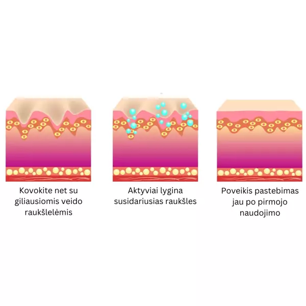Glikolio rūgštis - lygina odos tekstūrą, mažina smulkias raukšleles. | ![]() | |