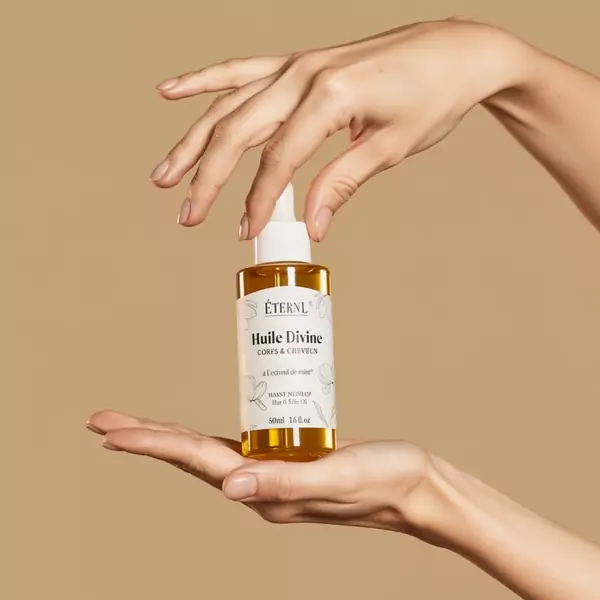 Etern'l plaukų blizgiklis (50 ml): C15-19 ALKANE, HELIANTHUS ANNUUS SEED OIL, PRUNUS AMYGDALUS DULCIS OIL, HYDROGENATED CASTOR OIL/SEBACIC ACID COPOLYMER, COCOS NUCIFERA OIL, ARGANIA SPINOSA KERNEL OIL, MEL EXTRACT, TOCOPHERYL ACETATE, PARFUM