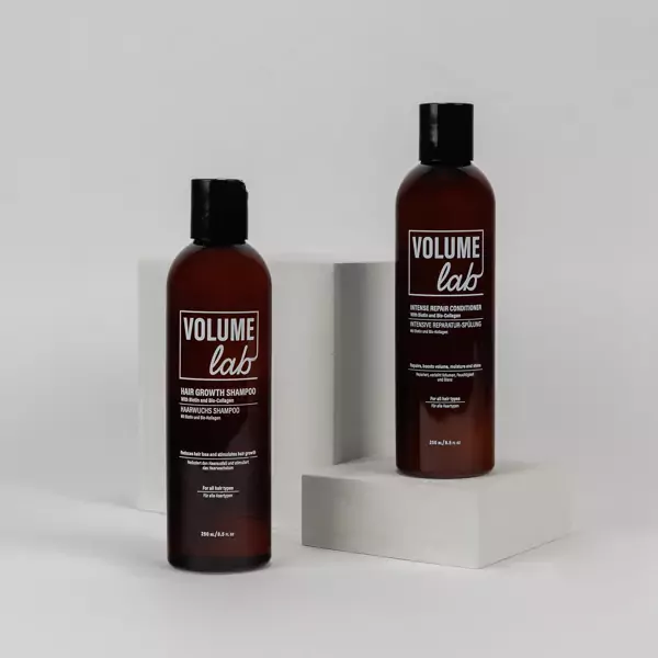 VOLUME LAB šampūnas (250 ml): Užpilkite nedidelį kiekį šampūno ant sudrėkintų plaukų, tolygiai paskirstykite ir švelniai masažuokite galvos odą, kol suputos. Kruopščiai išskalaukite vandeniu. Jei reikia, pakartokite. Venkite patekimo į akis, o patekus – praskalaukite vandeniu.