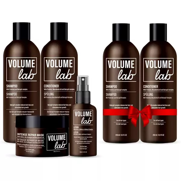 VOLUME LAB šampūnas (2 x 250 ml): Užpilkite nedidelį kiekį šampūno ant sudrėkintų plaukų, tolygiai paskirstykite ir švelniai masažuokite galvos odą, kol suputos. Kruopščiai išskalaukite vandeniu. Jei reikia, pakartokite. Venkite patekimo į akis, o patekus – praskalaukite vandeniu.